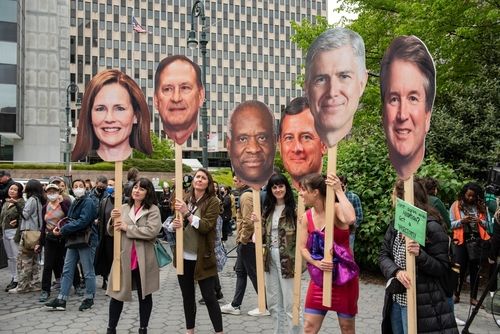After angry public reaction to the leaked Supreme Court Justice Samuel Alito draft opinion on reversing Roe v. Wade, Justice Clarence Thomas said: "We are becoming addicted to wanting particular outcomes, not living with the outcomes we don't like. We can't be an institution that can be bullied into giving you just the outcomes you want. The events from earlier this week are a symptom of that." The kind of events to which Thomas referred include pro-abortion activists blocking church entrances and protesting at the homes of Chief Justice John Roberts and Justices Brett Kavanaugh and Alito.